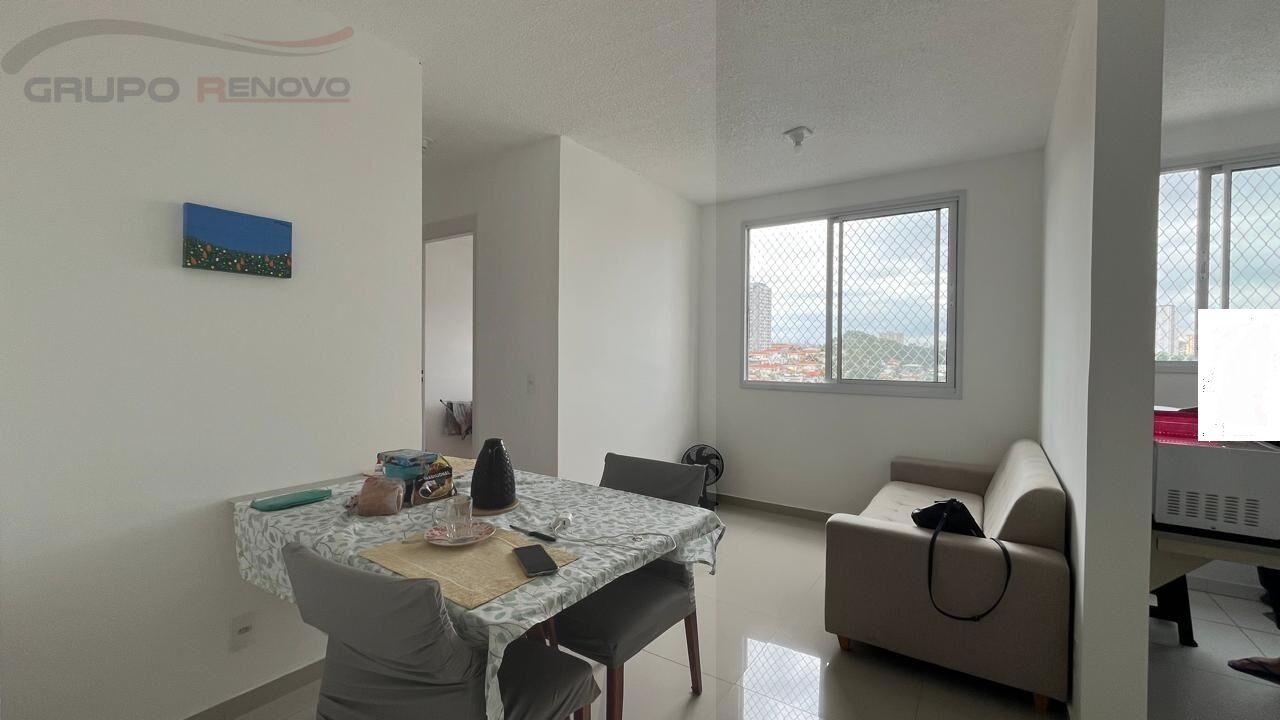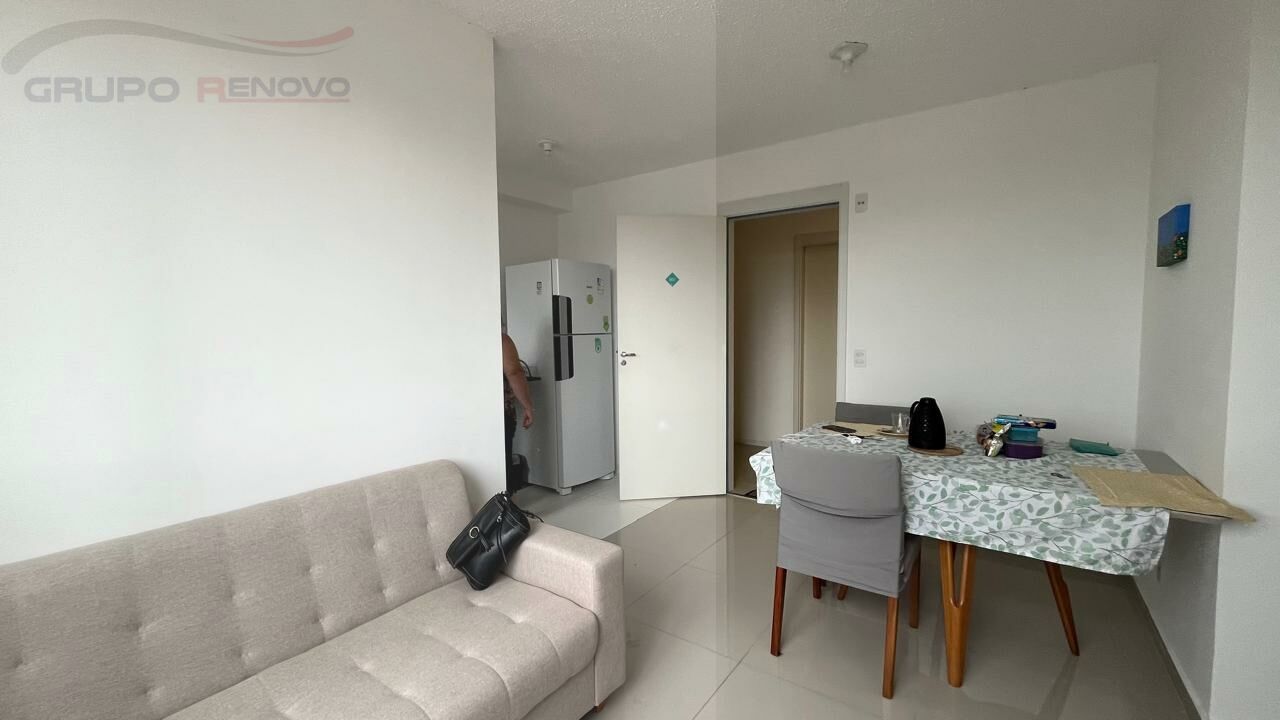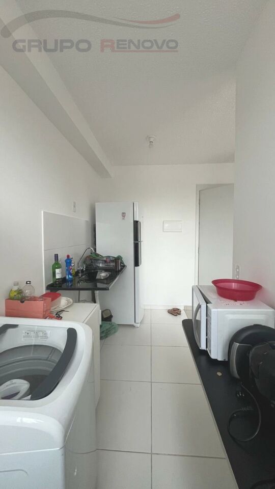 Apto com 2 dormitórios, 1 banheiro social (com box e chuveiro), sala para 2 ambientes, cozinha integrada com a área de serviço, sem vaga de carro.