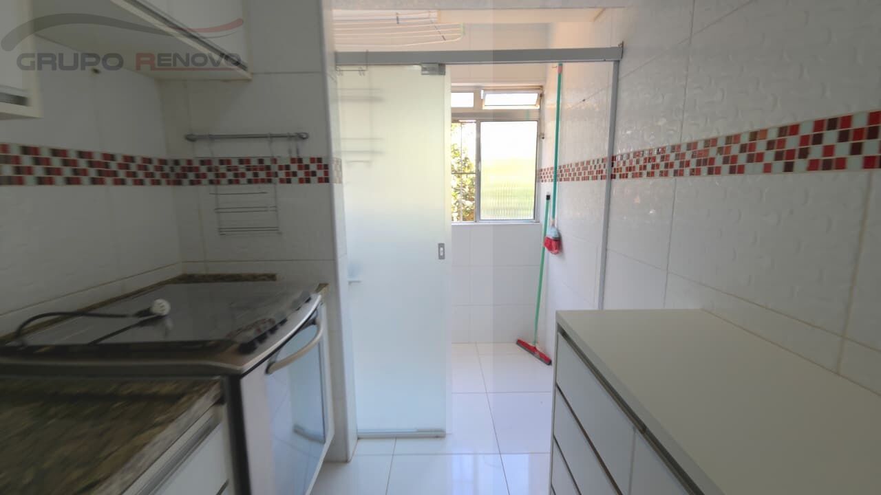 Apto com 2 dormitórios (1 dorm casal com móveis planejados c/ armário e cama), mais 1 banheiro social (com box e chuveiro), sala 2 ambientes (com sofá retrátil, com painel e rack TV), área de serviço, cozinha (com armários planejados e fogão), 1 vaga de garagem fixa e livre.